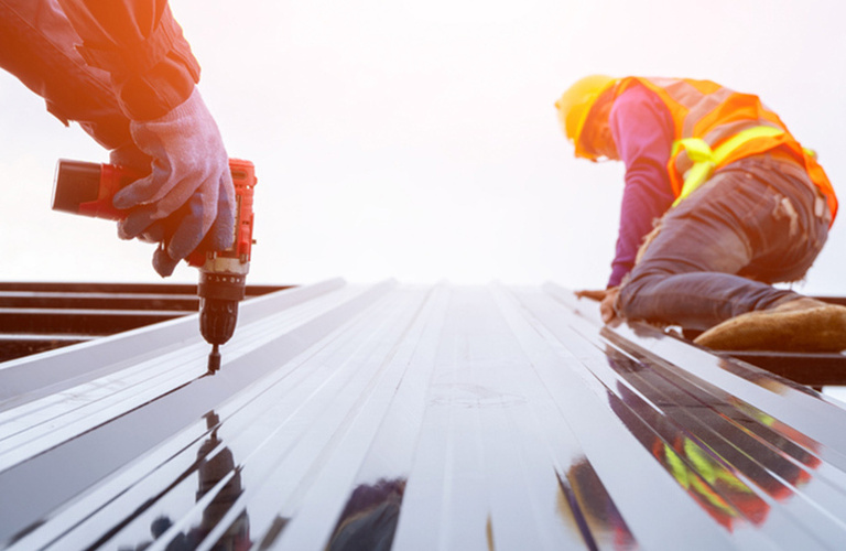 Installation of new roof in profiled metal sheets